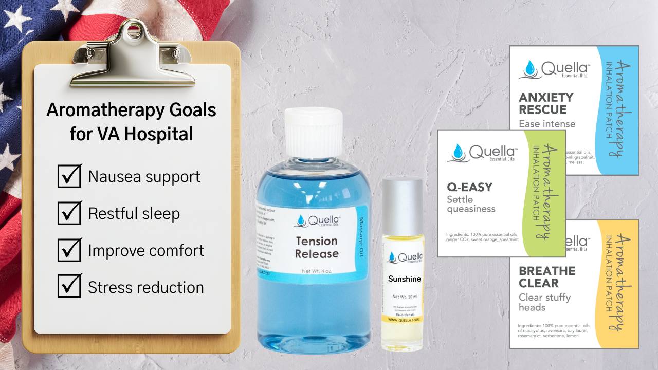 For over a decade, Quella Essential Oils has partnered with healthcare providers, including many VA medical centers, and staff Whole Health programs to help launch and grow compliant, effective aromatherapy programs.